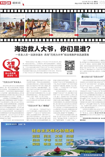如果你认识视频中救人的这几位“巧克力大爷”,或者曾经在海边被“巧克力大爷”帮助过,请拨打青岛早报热线82888000或在青岛早报全媒体平台上留言。