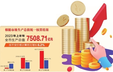 ●全市服务业增加值同比增长6.7%,比一季度加快1.6个百分点,占生产总值比重64.2%,对经济增长的贡献率为69.6%