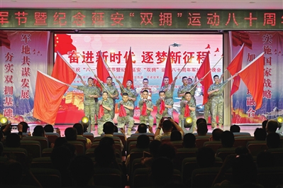 早报8月1日讯 7月29日,西海岸新区庆祝“八一”建军节暨纪念延安双拥运动八十周年军地联欢晚会在青岛滨海学院附属医院五楼礼堂举行。