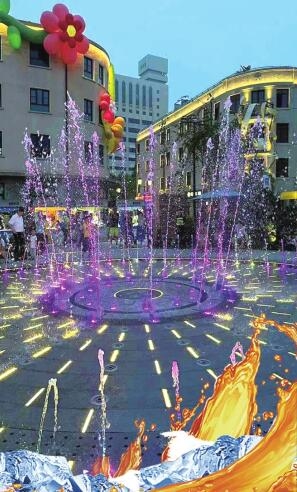 啤酒节期间,在老青岛人魂牵梦绕的四方路“三角地”,沉寂多年的水龙池子重现灵动波光,灯光、音乐、水幕交织于一体,让人仿佛置身梦境。伴随着历史城区保护更新的开展,作为上街里的亮点工程,水龙池子逐渐重回市民游客的视野。如今,夜游水龙池子,欣赏绝美的音乐喷泉秀,逛逛精酿市集,品尝霜白泡沫与麦芽香带来的清爽体验,已成为啤酒节的网红打卡点。