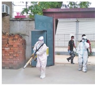 受此次洪水影响,刁窝镇当地有大量牲畜死亡,城郊乡村的公共卫生基础设施遭到破坏,生活垃圾到处可见,散发出恶臭,严重影响灾后家园重建。灾区的一些河沟积水地段,普通消毒喷雾器或工作人员都难以完成消毒任务,容易滋生病媒生物、造成水源污染。管吉平了解情况后,立刻通知在胶州待命的预备组运送12台新式弥雾机到灾区。