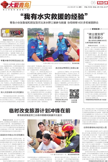~~~青岛能源集团员工孙崇休假期间驰援河北救灾