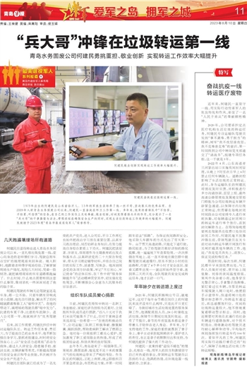 1973年出生的何建民是山东省临沂人。13年的军旅生涯培养了他一丝不苟、坚决服从的优秀品质。自2009年入职青岛水务固废公司以来,何建民一直奋战在环卫工作第一线。多年来,他秉持着部队中“不怕苦、不怕累、听指挥”的信条,在自己的工作岗位上无私奉献、敬业创新,时刻发挥着排头兵的作用,充分展示了一名“兵大哥”的干事激情与活力,带领班组在确保安全生产的同时,实现生活垃圾转运工作效率的大幅提升。何建民被授予2023年度“青岛市最美退役军人”荣誉称号。