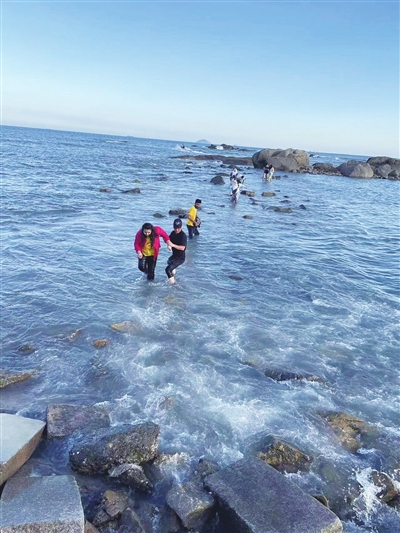 “我们巡逻时发现有20多名游客被困在海中礁石上。以我们的经验,再有20分钟海潮就涨满了,紧急情况下,我拿着大喇叭和队员们一起吆喝,‘要涨潮了,赶紧撤离’。”李国竹说,没想到当天涨潮速度很快,转眼这些游客就被困在了礁石上。看到情况危急,李国竹干脆跳到海里,游过去救人。