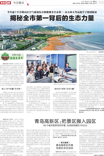 青岛早报 今日看点 A03 2023-08-161 2023年08月16日 星期三