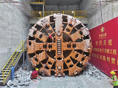 早报8月16日讯 8月16日,伴随着“市政铁军2号”盾构机的阵阵轰鸣声,巨大的刀盘缓缓转动,在洞穿了最后一层岩石后,终于破壁而出。这意味着历时163天、全长10.12公里、总投资12.07亿元的青岛市东部城区地下管廊工程(一期)盾构区间顺利贯通。该项目是青岛市重点民生工程、民心工程,是我市城市更新和城市建设三年攻坚行动的重点项目,也是市区第一批220千伏电力架空线下地工程。