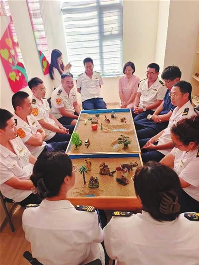 “请大家用手中的丝巾做一个造型,并根据造型表达你此刻的感受。”8月17日下午,来自青岛市总工会职工服务中心的专业辅导老师将“干货”满满的心理健康知识融入趣味互动中,带领青年职工放松身心、增强互信。大家围坐在一起,通过搭建沙盘,自由地表达内心情感和思想,通过老师专业化的辅导,在团队中去感受、去诉说、去倾听、去成长。