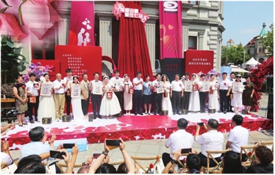 为大力弘扬中华民族传统美德和优良家风,积极倡树新时代文明婚俗新风尚,构建婚俗改革新场景,推动青岛市婚姻服务质量进一步提升,8月22日,“海誓山盟 爱在七夕”——2023年青岛市新时代青年集体婚礼活动在市南区浙江路26号安娜别墅举行。当天,《青岛早报》推出“家有喜事 为爱官宣”专版,为8对参加集体婚礼的新人送上新婚祝福,也成为当天集体婚礼上最浪漫的礼物。副市长赵胜村出席活动并为新人颁发志愿者证书。