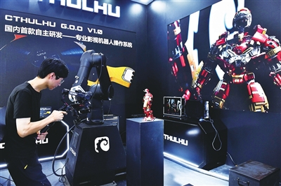 展会现场,两台黑色的拍摄机械臂来回挥舞,充满了“科技范儿”,吸引了大量观众驻足观看。峰会期间,现场还举办了“大视听 新体验”智能视听沉浸式体验展,为观众带来了炫目的视听科技盛宴。该机械臂是克苏鲁影视科技自主研发的产品,目前在电影、广告、广播和电商等领域有广泛应用,未来有望在教育、文旅、电商、婚庆等民用领域扩大发展。