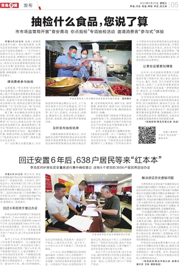 青岛早报发布A05抽检什么食品,您说了算 2023-08-25 2 2023年08月25日 星期五