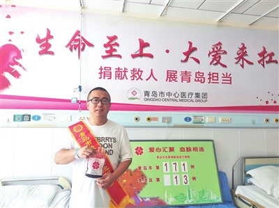 今年34岁的王常明,是青岛智成宝真酒业有限公司的销售骨干。2016年7月,他在参加献血活动时签下了捐献志愿书,留下了血样和电话,成为一名中国造血干细胞捐献者资料库的志愿者。今年7月25日,王常明接到李沧区红十字会工作人员打来的电话,告诉他有一名患者和他的造血干细胞留样初步配型成功,问他是否愿意捐献造血干细胞。“捐,当然要捐!我就是那名患者延续生命的希望。”王常明毫不犹豫地答应了下来。