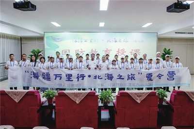 “有个道理不用讲,战士就该上战场,是虎就该山中走,是龙就该闯大洋……”军休干部徐吉华以一首诗开门见山,讲述了专属于潜艇兵的深蓝旋律,既有随艇出海遇到美机挑衅时的愤怒,也有穿越宫古海峡时的艰险,更有不分昼夜连续“战斗”的艰辛,可谓神秘与风险并存、寂寞与艰苦同行。在场师生报以热烈掌声,感动于他们用赤诚奉献的光照亮了深海大洋。此次夏令营活动,不仅是对教育援建形式的有益拓展,更是在精神层面关心关爱学生,希望通过国防教育浸润每一个学生内心,增加他们对军人职业的真诚热爱和无上尊崇,萌发投身国防、建设海军的坚定信念。