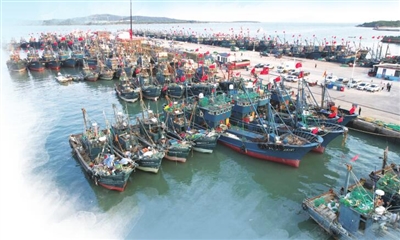 渔船“排排坐”整装待发。