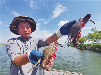 52岁的养殖户滕征余,今年初和妻子一起从辽宁营口老家来到即墨区丁字湾,承包了40多亩蟹田,开始了他们的养蟹生活。“这是我们第一次来到即墨搞养殖,看着眼下收获在望,心里也很高兴。”滕征余说。