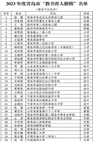 早报9月4日讯 9月4日,青岛市教育局公布2023年度青岛市“最美教师”和“教书育人楷模”选树结果。经个人申报、基层推荐、专家评审,评选出柴震等30名青岛市“最美教师”和招霞等34名青岛市“教书育人楷模”。