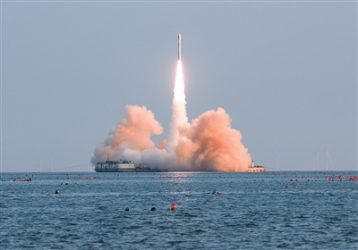 9月5日17时34分,我国太原卫星发射中心在山东海阳及附近海域使用谷神星一号海射型运载火箭,将天启星座21星-24星共4颗卫星顺利送入预定轨道,发射任务获得圆满成功。这次任务是谷神星一号运载火箭第9次飞行。新华社发