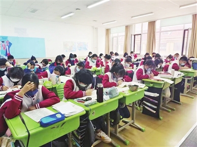青岛三十九中高效深度学习机制的建立,首先从自习、作业、考试等这些小事和细节开始。高中学生最后一节晚自习改为1.5小时的“自习大课”,自习时长得到有效保证,让学生“坐得住、坐得长、学得深”,培养了学生适应高考强度的能力。与此同时,学校还倡导自习课零走动、零声音、零抬头,又大大消除了自习课的外界干扰。