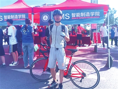 这名学生叫张浩东,是青岛黄海学院智能制造学院2023级电子信息工程专业新生。一直喜欢骑行运动的他,在暑假得到了一辆崭新的自行车。“我觉得坐火车、飞机来报到太普通。”于是,出于锻炼和挑战自己的目的,张浩东萌生了骑自行车来校报到的想法。