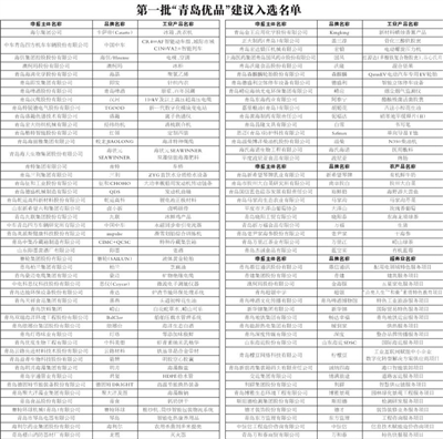 根据《青岛市人民政府关于实施“青岛优品”工程推动经济社会高质量发展的意见》要求,青岛市质量工作领导小组办公室牵头组织开展了第一批“青岛优品”品牌遴选工作。经组织申报、区市推荐、资格审查、专家评审、综合评价等程序,择优遴选产生了第一批“青岛优品”建议入选名单,目前面向社会进行公示。