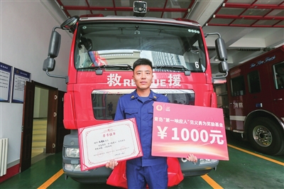 青岛市红十字会和青岛应急管理协会等单位,现场为孔祥雨颁发了荣誉证书和1000元奖金。“孔祥雨所在的奥帆中心消防救援站,守护着青岛最美的海岸线,特别在旅游旺季,几乎每天都有群众求助。孔祥雨加入消防救援队伍2年多来,直接参与营救水上被困群众40多人。”青岛市消防救援支队市南大队政治指导员孙翀介绍,孔祥雨现任市南区奥帆中心消防救援站灭火救援二班班长,对工作认真负责,事业心和责任心都很强,灭火救援行动中,他始终英勇顽强、冲锋在前,入职以来参加灭火救援400余次。