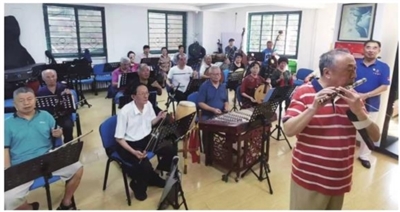 “蹦擦擦、蹦擦擦”,社区内爱好跳舞的叔叔阿姨们迈着轻盈矫健的步伐,伴着节奏舞动;葫芦丝共吹一曲《映山红》,一把二胡演奏《我的祖国》,白发苍苍却依然有着音乐梦的社区退休居民们,每周带上自己心爱的乐器,在音乐排练室奏响美妙的乐曲……大家体验着在“家门口”活动的快乐。