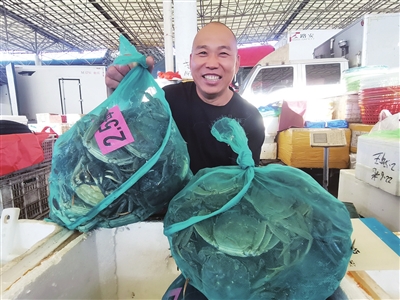 “这几天价格降了不少,但销量也大了。”在城阳水产批发市场做了20多年水产生意的王堂波,这个“双节”假期一天也没有休息,他和妻子一直起早贪黑忙着做大闸蟹的批发生意。“最早从9月中旬就开始进货了,那个时候大闸蟹的价格比较高,批发的量比较小。这几天量开始大了,价格也下降了。”王堂波拿起大闸蟹兴奋地说,他现在一天的进货量保持在5000多斤,由于客户相对比较固定,所以一般5个小时就销售一空,这些连夜运来的大闸蟹,当天就能摆上市民的餐桌。记者了解到,王堂波的老家在临沂,20多年前和妻子来到城阳从事水产批发生意,一年中根据季节从事小龙虾、大闸蟹批发生意。每年的9月到次年元旦,他和妻子田艳艳都忙着批发大闸蟹。如今,王堂波和田艳艳成立了青岛星露水产有限公司,成为城阳水产批发市场比较大的大闸蟹批发商。