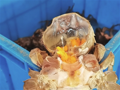 “国内大闸蟹养殖集中在江苏、湖北、安徽等地,其中,江苏大闸蟹养殖产量接近全国产量的一半。”王堂波介绍,生长周期内,大闸蟹需要蜕5次壳,每蜕一次壳体形约长大一倍。一般到农历六月,蜕了4次壳的大闸蟹就能够上市了,这批蟹俗称“六月黄”。如果遇到高温天气,大闸蟹不愿进食,生长就会迟缓。近期,江苏等地已开始降温,大闸蟹进入最后一轮关键生长期,蟹肉更加肥满。
