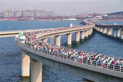 作为中国最美丽的马拉松之一,青岛海上马拉松以其别具一格的赛道和绝美的海景而闻名。在这里,来自世界各地的选手们将用他们的脚步丈量这片广阔的海域,见证着胶州湾大桥变“人桥”的盛况。创办于2017年的“海马”首秀便大获成功,并被中国田协评为“最美赛道特色赛事”。由于是全球少见的在跨海大桥上举办的马拉松赛事,特色鲜明、独树一帜的“海马”顺理成章地成为网红赛事。该项赛事在2018年荣获中国田径协会铜牌赛事,并在2019年荣获中国田径协会银牌赛事。作为国内唯一的海上马拉松赛事,独特的海景奔跑体验+各种海鲜补给,让青岛海上马拉松成为每年下半年不少跑友的跑马首选。