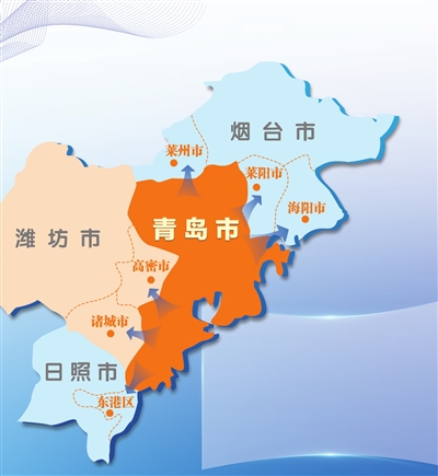 青岛都市圈以青岛市为中心,与联系紧密的潍坊市、日照市、烟台市共同组成。主要包括青岛市全域,潍坊市诸城市、高密市,日照市东港区,烟台市莱阳市、莱州市、海阳市,陆域总面积2.15万平方公里,2022年末常住人口1558万人。