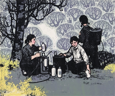 那个年代,艺术生活并不普及,社会上几乎没有职业画家和艺术创作机构,在青岛,版画又是冷门,版画家极少,也找不到专业老师。张白波只能拿着一本《怎样刻木刻》的小册子,并观摩、研究报刊上发表的版画作品,独自一人揣摩、分析,领悟木刻黑白的妙用,练习刀法的技巧。后来,他开始兼任美术课老师,再后来,他成为美术课和语文课的全职教师,与此同时,他也开启了漫长的版画创作历程。