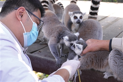 随着秋意渐浓、天气转凉,小动物们也更容易产生肠胃疾病、呼吸道疾病等症状,采血化验、B超检测、粪便检验、疫苗免疫、喂服驱虫药……青岛森林野生动物世界的工作人员开始为园内的环尾狐猴、羊驼、亚洲象、非洲狮等180余种、2000多头(只)动物进行全面的体检。