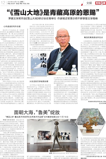60万字的文学巨著、茅盾文学奖的获奖之作,青岛作家杨志军的《雪山大地》以其辽阔的视野和宏观的叙事,让那片遥远却神秘的青藏高原有了中国式现代化的文学表达。10月29日下午,杨志军《雪山大地》研讨会在中国海洋大学崂山校区举行,来自全国的专业文学研究者各抒己见,深度探讨文学作品与时代的关系,深度解读杨志军这部荣获茅盾文学奖的作品魅力所在。面对着诸多关注,作家杨志军(右图)低调且谦逊地表示:“《雪山大地》是青藏高原的恩赐。”