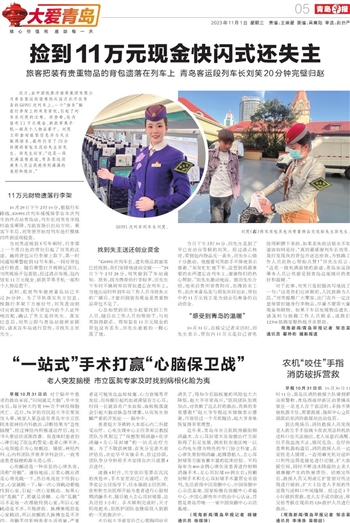 ~~~旅客把装有贵重物品的背包遗落在列车上 青岛客运段列车长刘笑20分钟完璧归赵