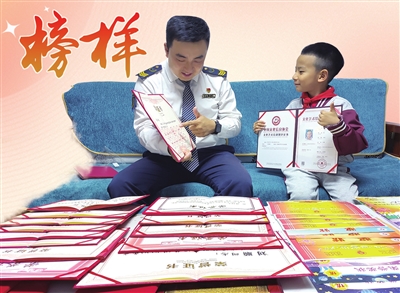 刘顺的一言一行深深影响着儿子刘沐熙 上三年级的他得了30多张奖状