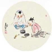 时至今日,沈嘉荣仍在坚持创作,手头上亟待付梓印刷的作品令他的日常作息紧张而忙碌。尤为值得一提的是,在熟稔电脑操作流程之后,近些年来沈嘉荣返璞归真,开始手绘“婴戏图”,并将这类传统题材应用于插画的创作中,赋予作品独特的中国味。“婴戏图”是中国画的一种传统题材,唐即有,至宋发达,及明清大盛,常以此表达喜庆吉祥、多子多福的祈愿。沈嘉荣的“婴戏图”兴味盎然,孩子的眼睛中流露着善良、天真、自然的光彩。