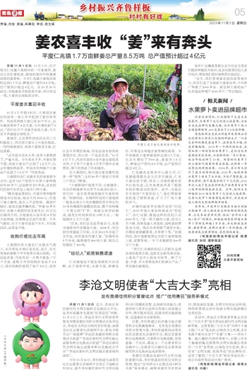 ~~~平度仁兆镇1.7万亩鲜姜总产量8.5万吨 总产值预计超过4亿元