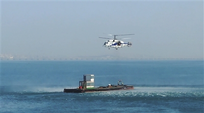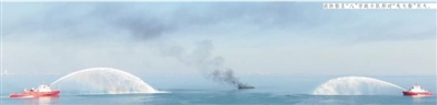 青岛市消防救援支队航空救援大队的Ka-32重型消防直升机飞抵船只起火现场后侦察发现,海上遇险船只已经处于全面燃烧状态,船员弃船跳海逃生,其中2人未穿救生衣,情况万分危急。现场指挥员迅速研究制定救人灭火方案,展开救援行动。按照“救人第一”的原则,2架救生圈型无人机从“青消3号”消防船起飞,同时,摩托艇、橡皮艇向落水人员全速行驶,全面展开营救。