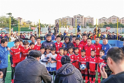 早报11月6日讯 6日下午,罗纳尔迪尼奥中国行青岛专场在上实中心球场举行了球迷见面会及三对三足球挑战赛。两届世界足球先生罗纳尔迪尼奥对青岛西海岸足球俱乐部青训梯队小球员的暖场赛表现给予很高评价,并与俱乐部一线队球员田勇、葛振、陈柏良、拉尼尔和韦斯利热情交流。