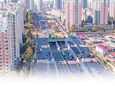 目前,辽阳路快速路主线高架桥、匝道桥、地面道路、地道段南半幅已全部完成。主线高架桥及地面道路于2022年12月26日建成通车,较原计划提前94天;匝道桥于2023年5月4日实现通车,较原计划提前119天;地道段南半幅于2023年6月21日实现通车,较原计划提前2个月;桥下道路于2023年7月15日完成,较原计划提前47天。现在,辽阳快速路北半幅地道段主体结构封顶,比计划提前1个月。