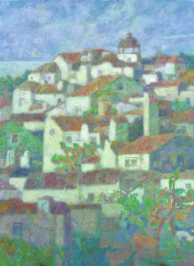 曲宝来坦言自己最爱画的就是青岛,画青岛的山水自然、特色建筑。而他的绘画与众不同之处在于,别人写意或刻意描绘现实生存之态时,他却一直在做哲学上的思考,这使得他的画作呈现出既现实又幻化的精神语境。
