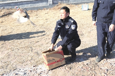 活动现场,民警检查了被解救野生鸟类的健康情况,确保在放生后无生存隐患,将四只笼子一一打开,这些久未与大自然接触的鸟儿迫不及待地飞向天空。考虑到野鸡的特殊习性,民警并没有在集中放飞现场任其“一走了之”,而是专程将被解救的野鸡带至野外放生。