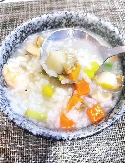 扇贝在餐桌上,除了是一道可口的家常菜,还可以熬成海鲜粥,冬天喝上一碗,也是不一样的体验。做海鲜粥的扇贝肉要清理干净,不然喝粥容易有沙子硌牙。米粥煮好后,在锅中倒入胡萝卜丁、香菇片和焯过水的青豆等喜欢的配菜,先焖煮一会。扇贝容易煮熟,最后加入即可,倒入扇贝肉后煮3分钟,再加入适量胡椒粉、盐调味,搅拌均匀后即可出锅。