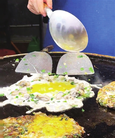 把海蛎子做出特色,还得数闽南和潮汕地区的经典小吃——蚵仔煎。想在青岛吃到一份地道的蚵仔煎不难,在不少闽南菜馆和人气爆棚的夜市小吃街都能寻到。原料制法都极为平实,食材以海蛎子、鸡蛋为主,而制法,主要是将两者混合后煎制。“这道菜最初是因为先民无法饱食,所以才靠海吃海,发明出的粮食替代品。”在台东经营一家闽南美食小店的金师傅说:“做成一份过关的蚵仔煎,是很考验手艺的。”金师傅将蚝肉洗净,置入平底锅,用少量油略煎,之后将事先调匀的粉浆淋少许入锅内,待凝固时打入蛋并弄散煎至半熟。之后加入少量的配菜,如韭菜、小白菜等时令绿叶菜,翻个面,再淋上些酱汁,就算完成了。