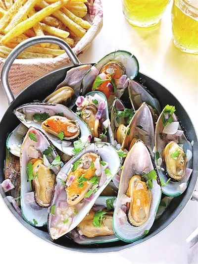 说起吃贻贝,我们先把目光转向遍布红屋顶和罗马柱的意大利,香草是这里美食的专属味道。原产于埃及的香草,在意大利菜中找到了用武之地,和西红柿搭配堪称意大利菜的“绝代双骄”,披萨、意大利面、海鲜饭……都有它们的身影。先将蒜瓣、焙熟的松子等一起捣碎,再加入帕马森干酪、橄榄油研磨而成的青酱,是意大利菜最常用的酱料,可以用来蘸面包、拌通心粉、烤海鲜,也可以加在熟意面里略煮,做成淡绿色的青酱意面。只要吃上一口,便可感受到亚平宁半岛温柔的热情。借用这一抹清新来避开腥味,热锅放一点黄油煮化,加入洋葱碎和各种香草碎炒香,然后放入贻贝和白葡萄酒焖煮,便是鲜美的西餐贻贝了。