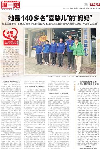 ~~~崔永兰是春雨“喜憨儿”洗车中心的创办人 也是市北区春雨残疾人辅助性就业中心的“大家长”