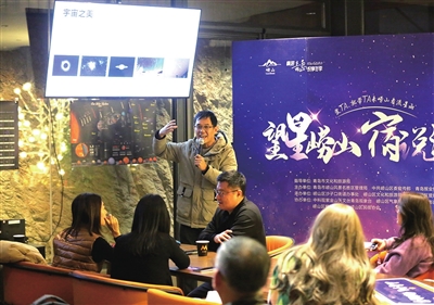 “望星崂山 ‘宿’说浪漫”活动还精心设置了游戏互动环节,现场所有人自由组队,以星空为主题来了一场酣畅淋漓的“唱歌PK赛”,歌词中需要带有星空的内容,连续3轮均符合要求的团队获胜,可获得纪念币套装,参与的团队不会“空手而归”,都获得了小米充电宝。“很久没参加这么有意思的体验活动了,既能体验壹凡森海的环境之美,瞰海观星,又能和朋友们一起做游戏、学知识,还拿到了奖品,感觉非常充实。”一位“观星使者”告诉记者。