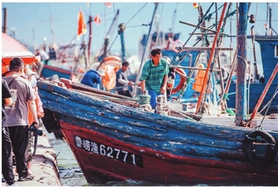9月1日 渔船满载归港,众多市民等在岸上抢购“开海第一鲜”。