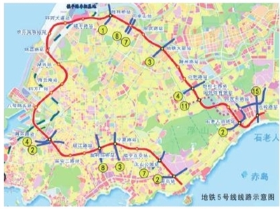 青岛地铁5号线位于青岛核心城区,起于麦岛站,止于云岭路站,是串联青岛中心区轨道交通网络的“C”形线路,覆盖市南、市北、崂山三区,线路长约32.6千米,共设27座车站,其中换乘站12座,与8条地铁线串联。线路建成运营后,将提升东岸中心城区地铁网络化运营功能,促进青岛社会经济发展。