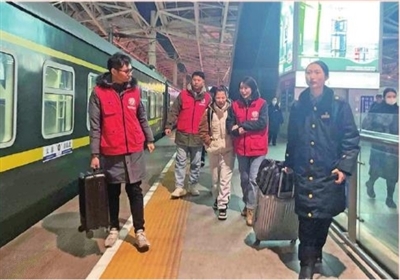 1月11日早上6时许,K882次列车准时到达终点站太原站,当张振兴和同学们下车时,由青岛市无障碍促进会提前联络的车站志愿者已经在接站台上等候,直到把他们送到出站口,交到家人手中,志愿者才放心离去。