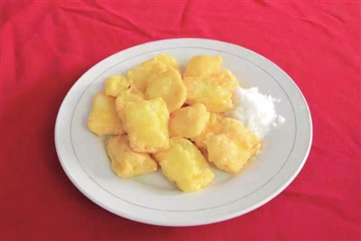 山羊奶豆腐最经典的吃法是油炸,将奶豆腐切块,加入生鸡蛋清、淀粉拌匀,勺内油热七成,放入奶豆腐炸至金黄色即可出锅,出锅后再撒上白糖,此时的奶豆腐色泽金黄、外酥里嫩、香脆可口。阖家团圆的年夜饭里,有了如此温润、鲜美的家乡味,岂不更其乐融融?
